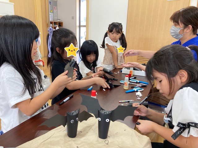 室内では、10月のハロウィンに向けて「こうもり」や「フランケンシュタイン」の工作も