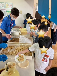 今回のお月見イベントでは、こどもたちの回答通り白玉だんごとどら焼きを食べました!