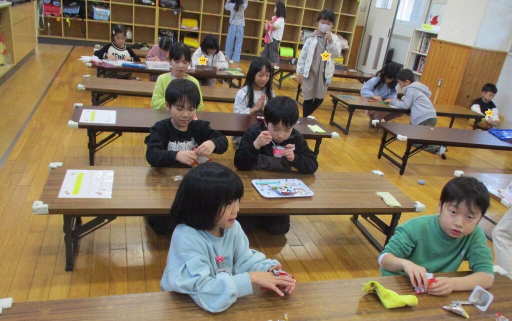 おやつ時もお友達との間隔を開けて座ってもらったり、室内の換気を定期的に行ったりと感染防止につとめています。