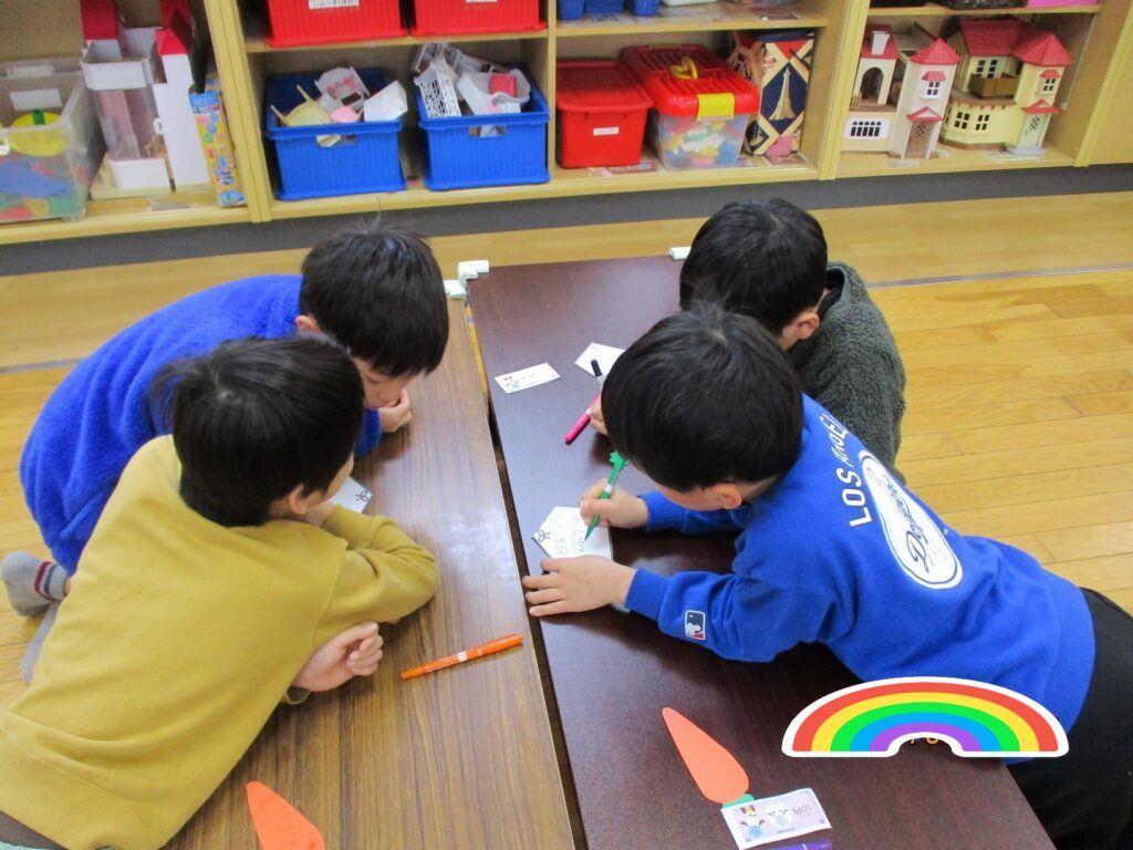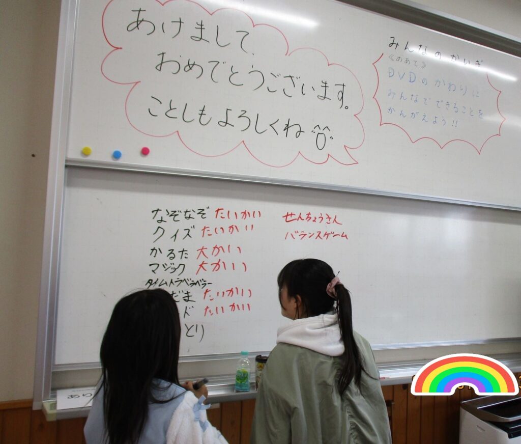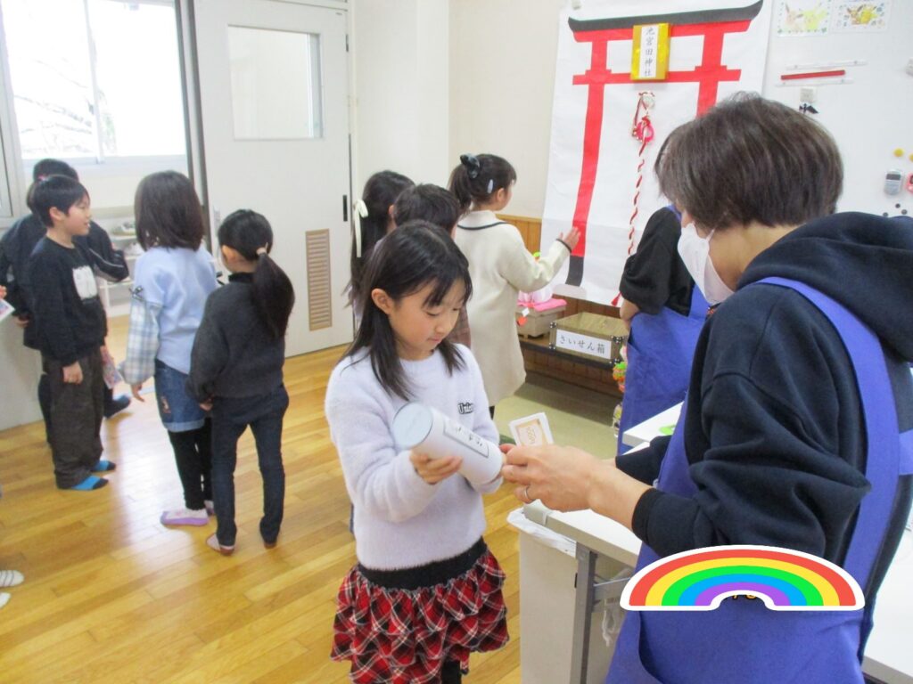新年、2026年が始まりました。南学童に神社が出現しました。こどもたちは神社で初詣をし、おみくじを引いて運試し。大吉や大大吉、超大吉にとっても喜んでいました。絵馬に願い事を書いて、良い1年になるようにお祈りしました。