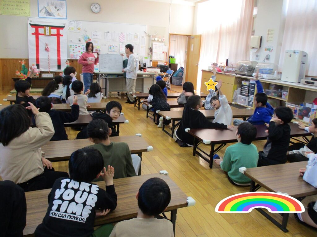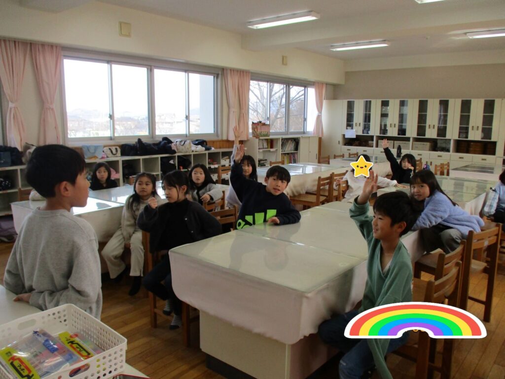 また、それぞれのクラスで「お弁当後の時間を、お腹を休めながら有意義に過ごそう!」というテーマこども会議を開きました。上級生が司会をして、皆で色々な案を出してくれました。飽きないよう、日々変えながら楽しく過ごし、そして上級生には、その時間の司会進行してもらいながら、皆をまとめる力も付けてもらえたら...と思っています。