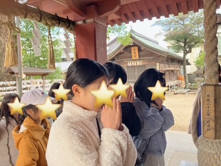 まず初詣では岩崎神社にみんなでお参りに行きました。