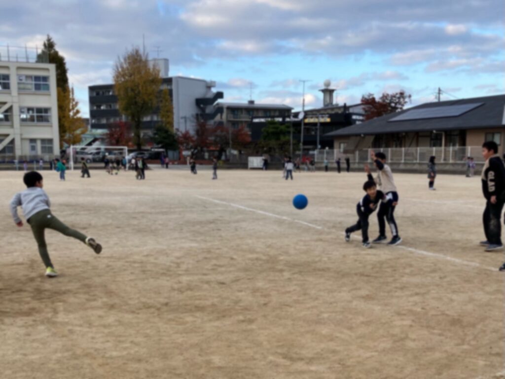 サッカーや鬼ごっこ、ドッヂボール、遊具など、クラス、学年に関係なく遊ぶこどもたちの姿が見られてとても嬉しく思います。