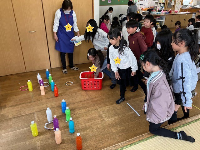 今回のスタンプラリーでは、学童の室内に「わなげ」「ジェスチャーゲーム」