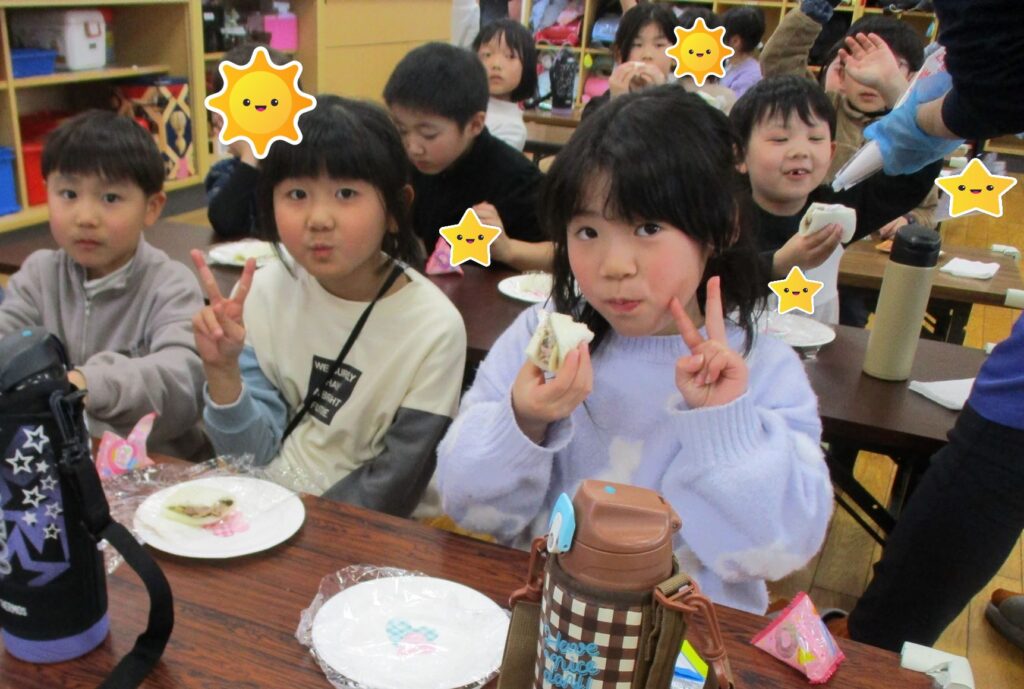口のまわりにチョコを付け、「おいしかったぁ」「おかわりしたーい」という声があがっていて、バレンタインイベント大成功! 美味しく楽しい時間でした。