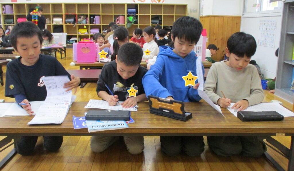まず1年生は入室後にほぼ全員が宿題をする習慣がつきました。また時間差で入室した高学年のこどもたちも、低学年が先に宿題を終えて遊んでいる中でもしっかりと集中して宿題にとりかかることができています。