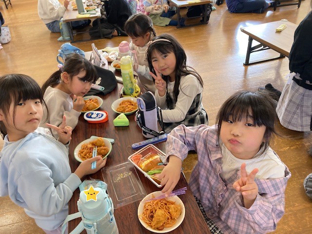 この日の昼食では4、5年生が調理を担当してナポリタンを作り、みんなでおいしくいただきました。